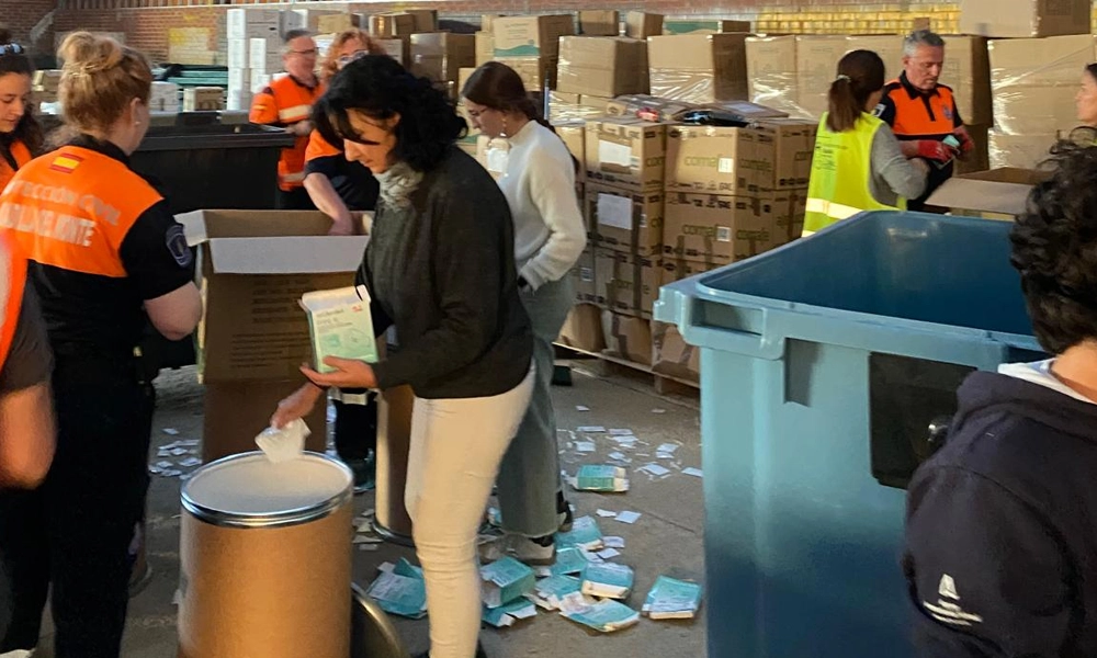 Nuestra tarea consistía en vaciar cajas de mascarillas y meterlas en bidones en los que escribíamos lo que contenía el recipiente que luego se enviarán a Valencia. Estuvimos allí durante dos horas ayudando junto a otros voluntarios. Aun que me sorprendió que dadas las condiciones no hubiese más gente ayudando. Conseguimos llenar 4 bidones con mascarillas y los organizadores del punto de recogida estuvieron muy agradecidos de que fuésemos.